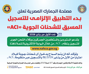 أكد رئيس مصلحة الجمارك المصرية، أحمد أموي، عدم فرض أي رسوم إضافية على المستوردين مع بدء التطبيق الإلزامي لنظام التسجيل المسبق للشحنات الجوية “ACI” اعتبارا من الأول من يناير المقبل، موضحا أن الهدف هو تقليص زمن وتكلفة الإفراج الجمركي وتيسير الإجراءات على شركاء المنظومة.