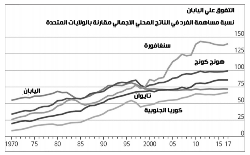 ويمكن الإشارة إلى مسار الناتج المحلى الإجمالى للشخص الواحد، المحسوب على أساس تعادل القوة الشرائية فهو مثير للإعجاب، كما تجاوزوا مصيدة الدخل المتوسط المفترض منذ وقت طويل، وستصبح كوريا الجنوبية قريباً النمر الرابع الذى يتفوق على اليابان التى كانت فى يوم ما تخضع لحكمها الإمبراطورى وظلت معلمها الاقتصادى.